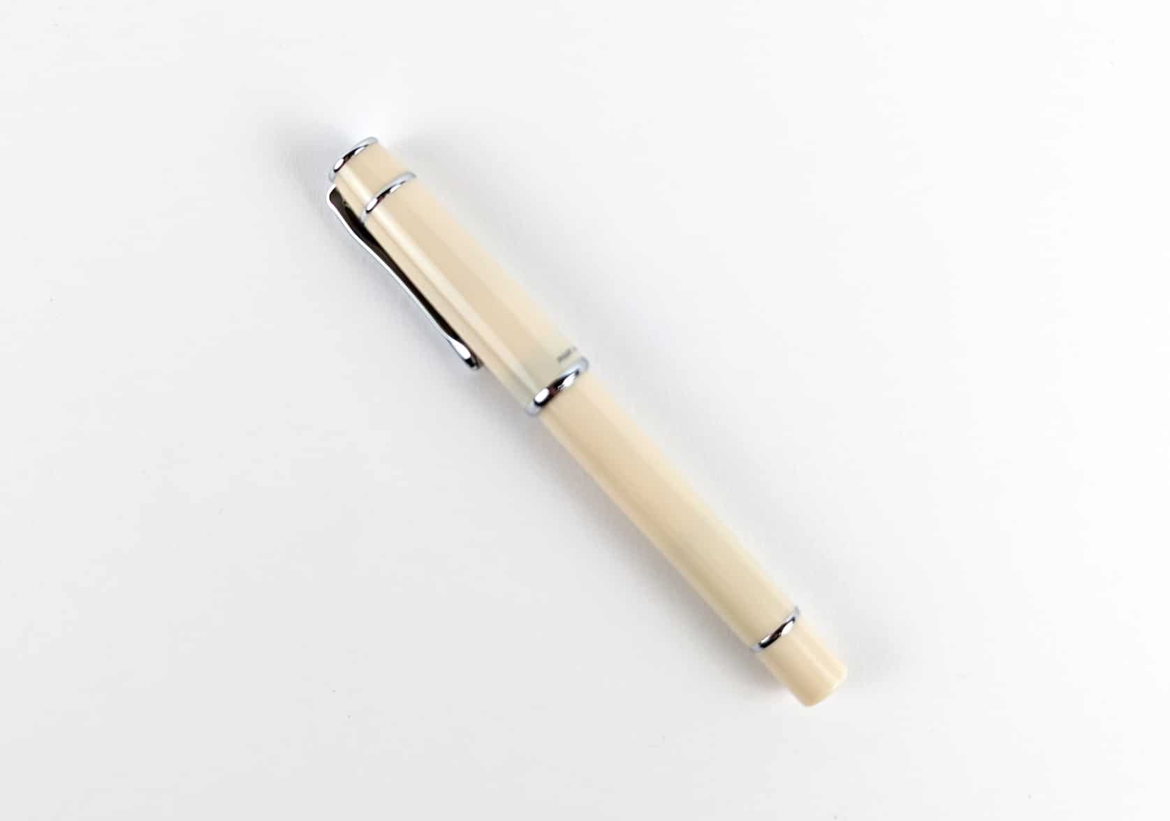 While there is nothing fancy about this fountain pen, it will surprise you with its consistency, quality and comfort. It’s ideal for when you are out and about and want a practical fountain pen as your steady companion. Pilot Petit1 is a sturdy and inexpensive, yet high-quality pocket-size fountain pen with a red tinted plastic barrel. The barrel is transparent, so you can see the ink flow through the pen. To make the pen feel more like a regular fountain pen, take off the cap and post it at the end while you write. It has a steel nib in size fine (F) (however, this is more of an American F rather than a Japanese F). It comes ready-to-use with one spare ink cartridge.