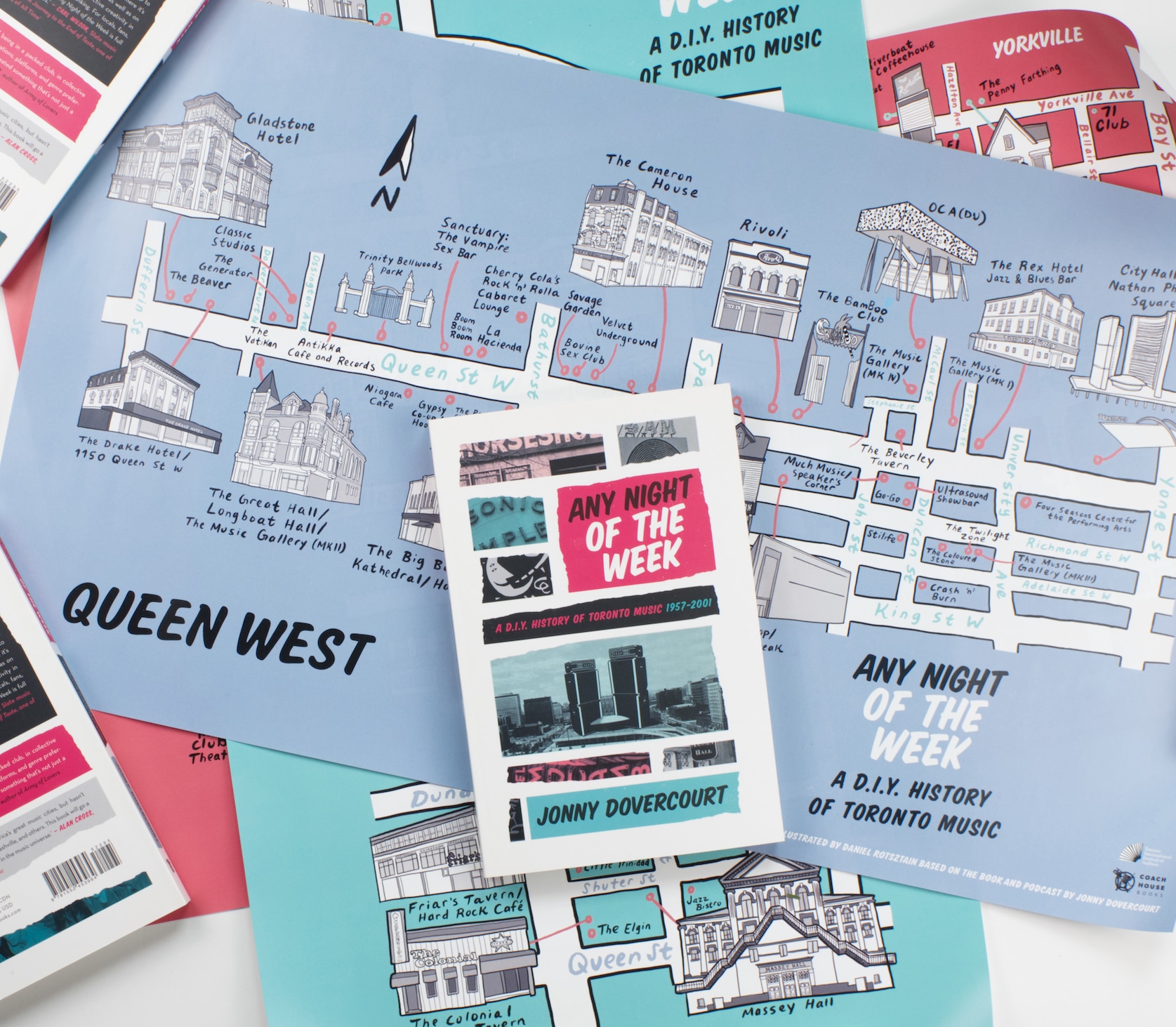 “Jonny Dovercourt, a tireless force in Toronto’s music scene, offers the widest-ranging view out there on how an Anglo-Saxon backwater terrified of people going to bars on Sundays transforms itself into a multicultural metropolis that raises up more than its share of beloved artists, from indie to hip-hop to the unclassifiable. His unique approach is to zoom in on the rooms where it’s happened – the live venues that come and too frequently go – as well as on the people who’ve devoted their lives and labours to collective creativity in a city that sometimes seems like it’d rather stick to banking. For locals, fans, and urban arts denizens anywhere, the essential Any Night of the Week is full of inspiration, discoveries, and cautionary tales.” —Carl Wilson, Slate music critic and author of Let’s Talk About Love: A Journey to the End of Taste, one of Billboard’s 100 Greatest Music Books of All Time