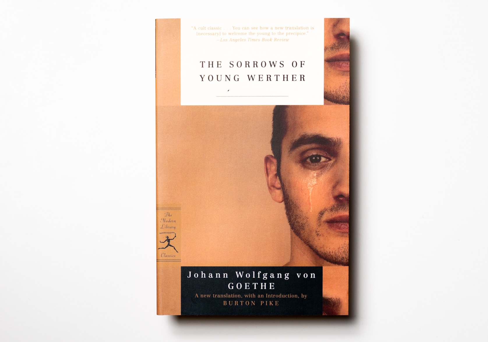 • A gift wrapped in green tissue paper stamped with pink Young W monograms. The gift is packaged with a pink ribbon and gift tag. The gift tag reads: "To: Wilhelm. From: Daniel".