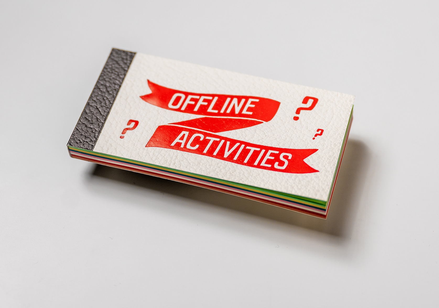 There are 32 prompt cards in this exploration kit. They contain 46 prompts to add a touch of analog to your life, be it in your leisure time or your daily routine (everything from going to a theatre play and listening to music on cassette tapes to keeping a physical address book).
