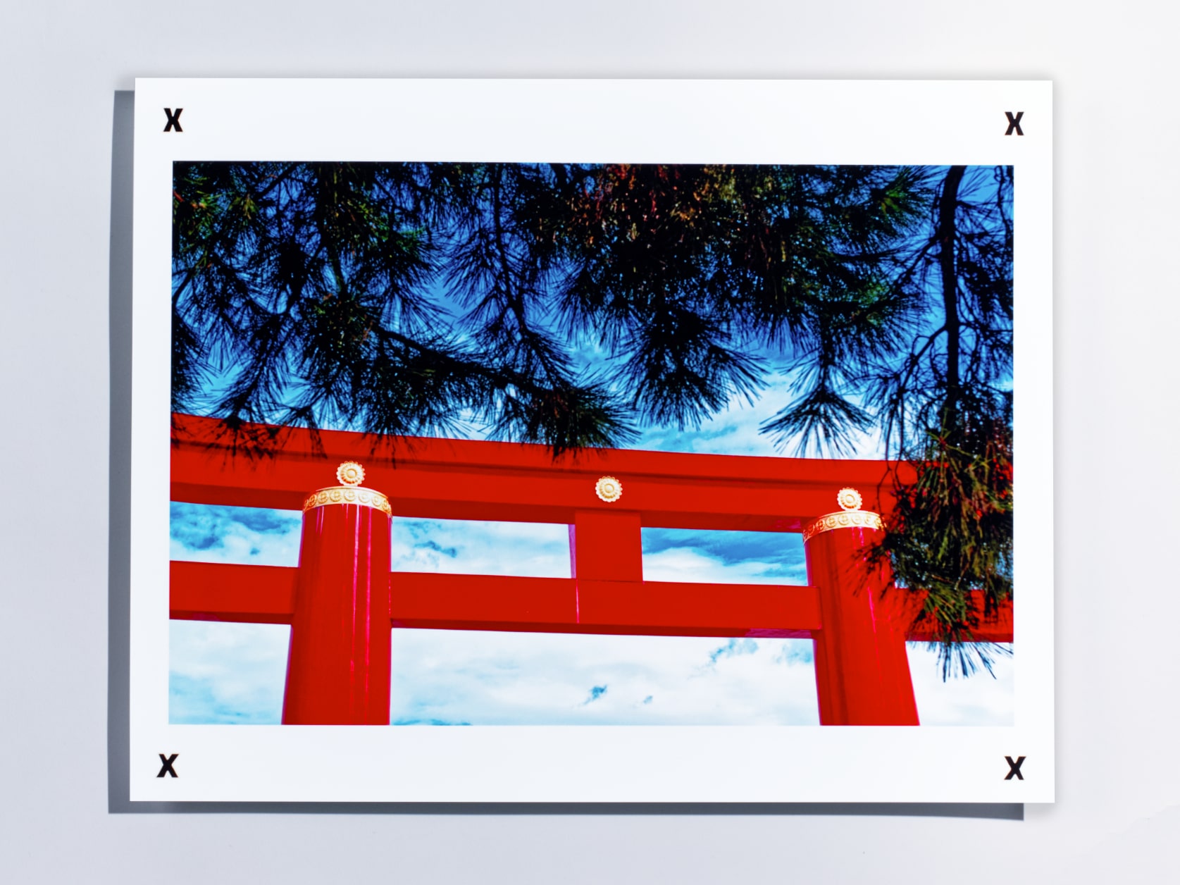 High-quality inkjet print, printed on premium inkjet paper. Push pin ready: each print has an ‘X’ in its corners to mark the spot for a push pin when affixing the print to a wall or bulletin board, with each ‘X’ outlined in a colour contained in the print.