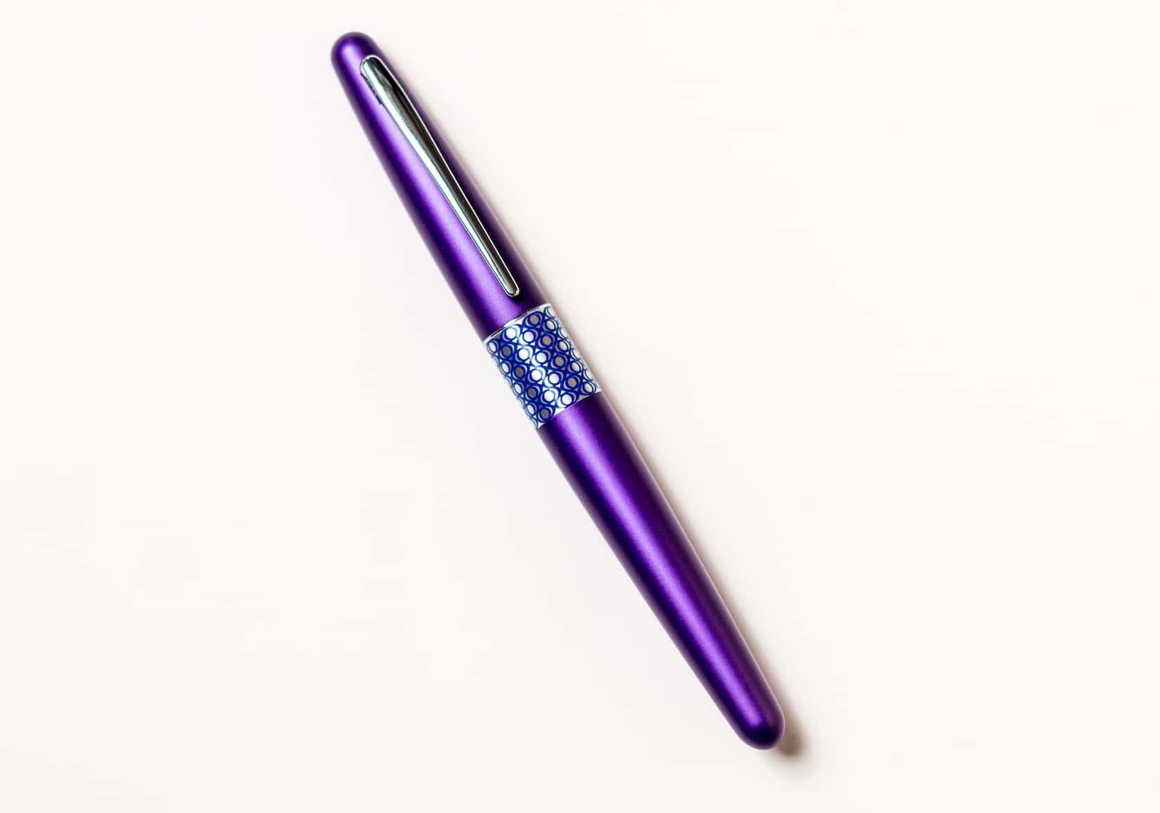 Vivid pink fountain pen with fine or medium nib. Uses Pilot’s proprietary ink cartridges (IC-50).