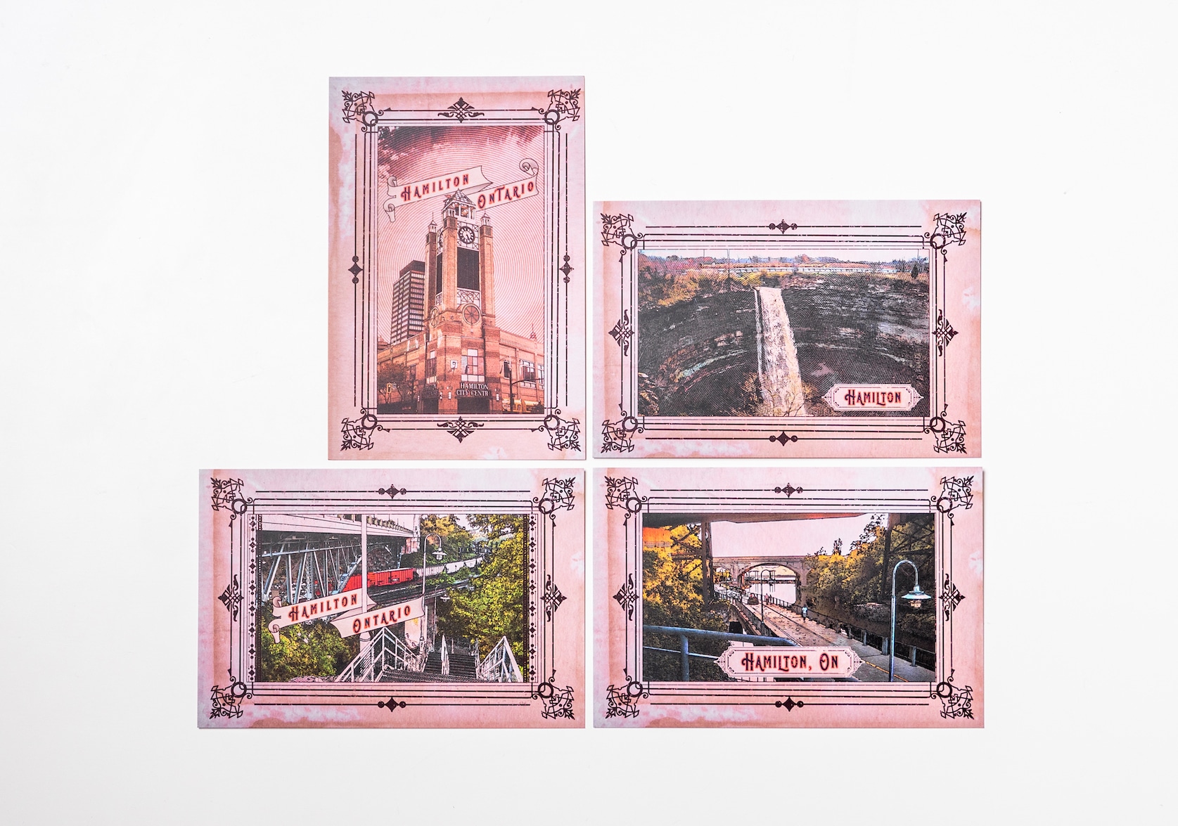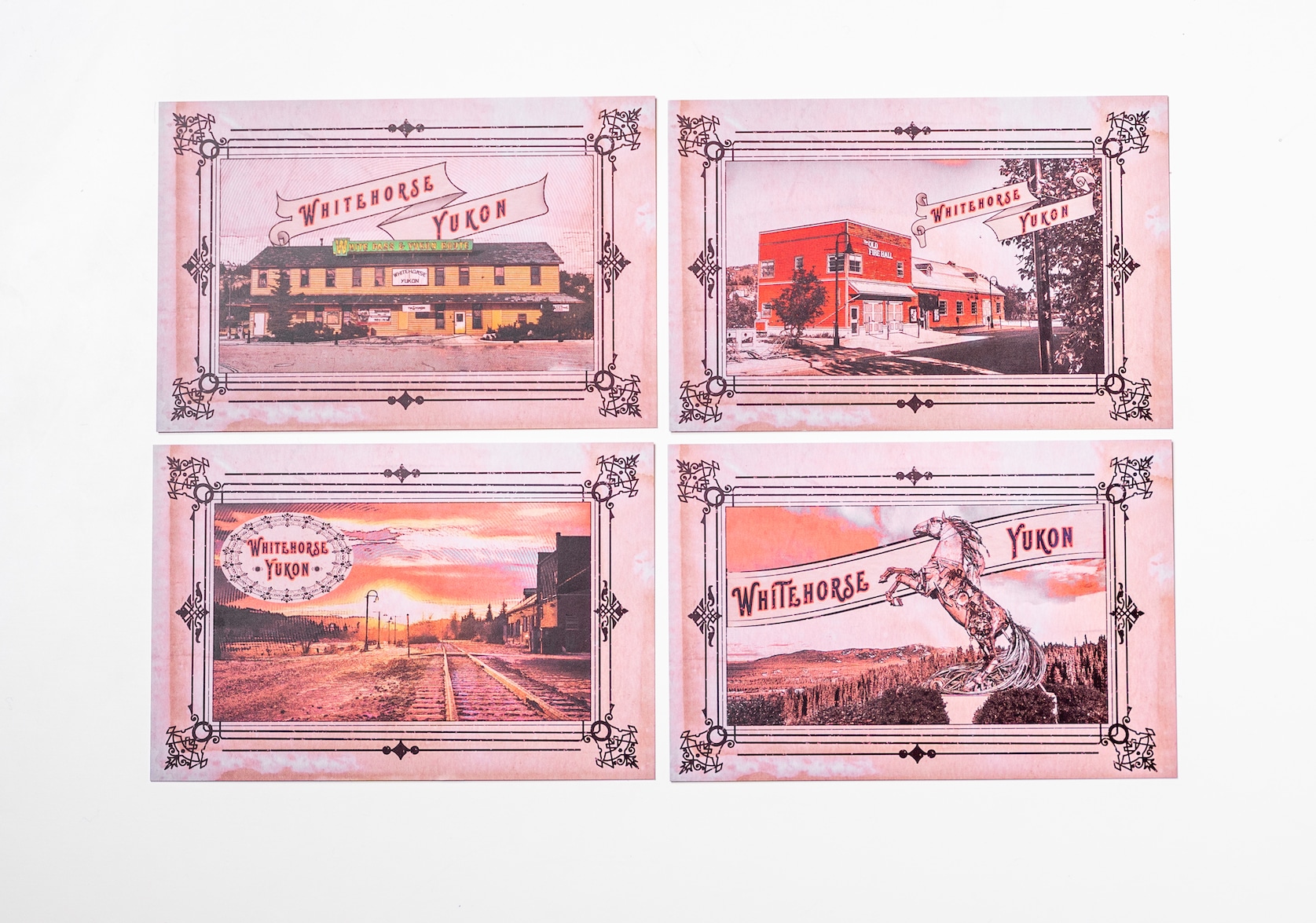 A set of four postcards featuring motifs from the city of Winnipeg, MB. Created by Porcelain Postcards. Postcard dimensions (each): 4″ x 6″ (10.2 cm x 15.2 cm).