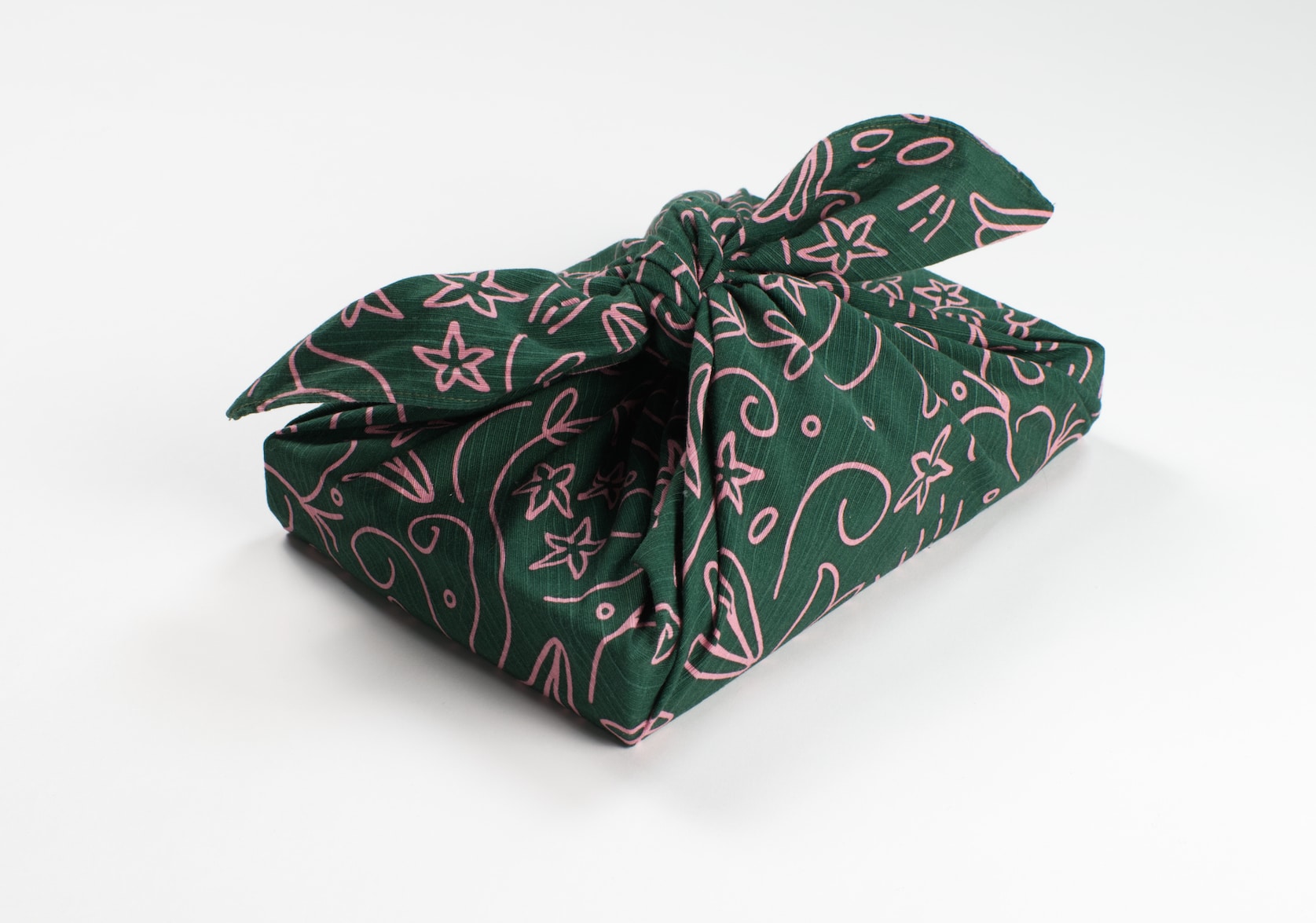 A set of four postcards featuring an abstract paper collage in shades of green, purple, lilac, pink and blue. Postcard dimensions (each): 4 x 6″.